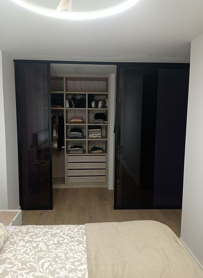 En este proyecto , hemos instalado una puerta para armario vestidor que también actúa como separador de ambientes , aportando estilo y personalidad a la